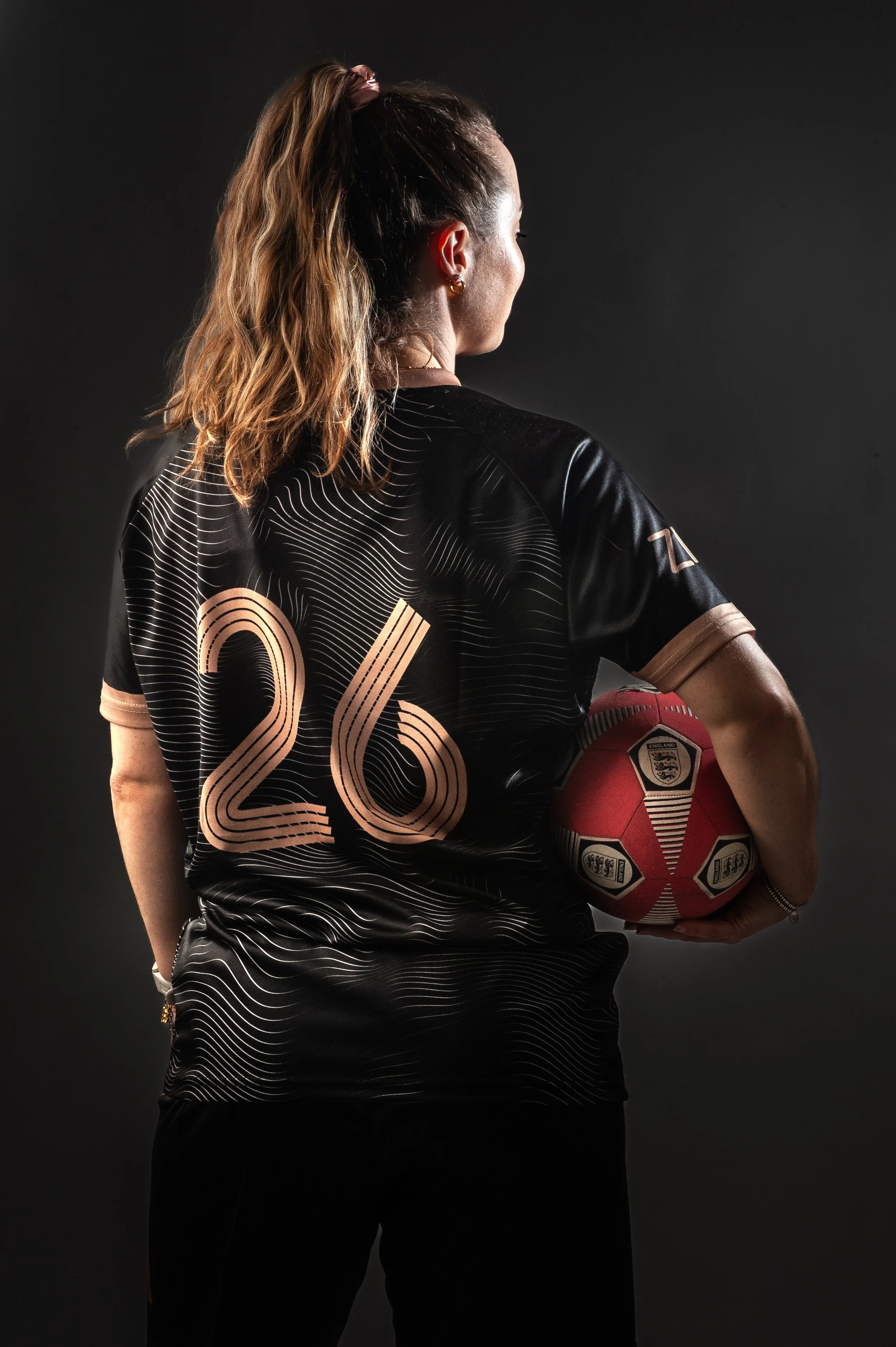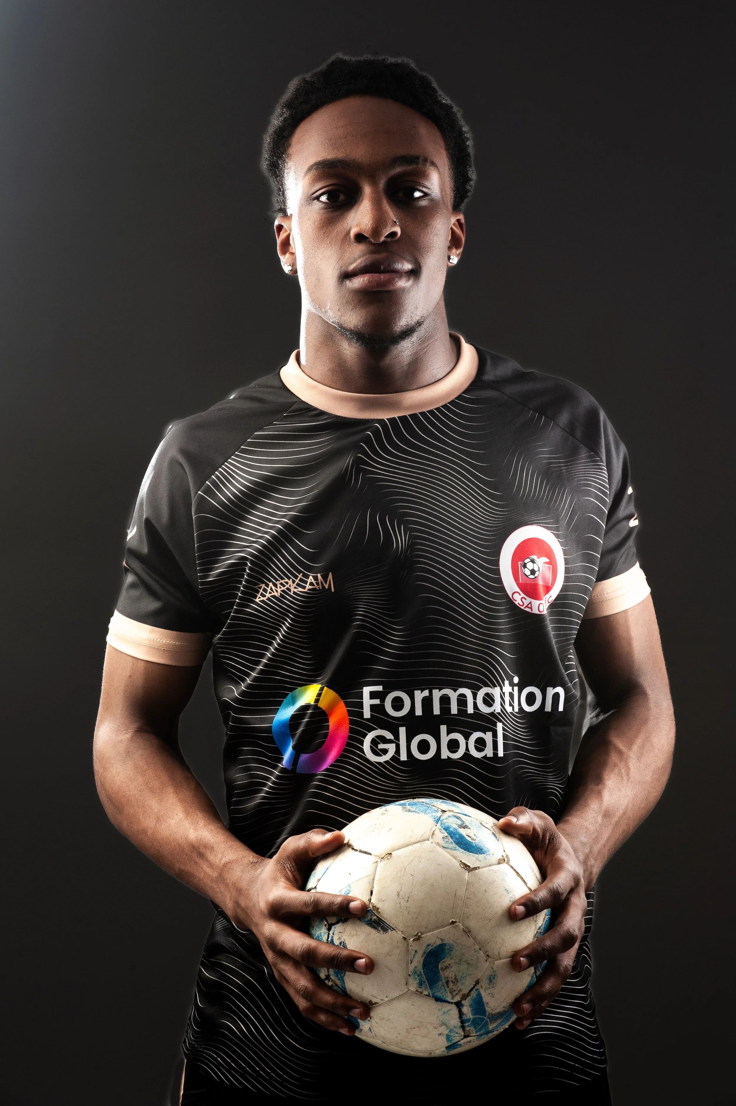Working with local Gloucester sportsmen and women makes our job easy because they bring natural intensity to the frame. For this shot, we kept the focus sharp on the eyes while ensuring the Formation Global and CSA logos remained crisp. By having the athlete hold a well-used football, we added a layer of grit and authenticity—this isn't just "fashion"; it's gear built for the pitch.